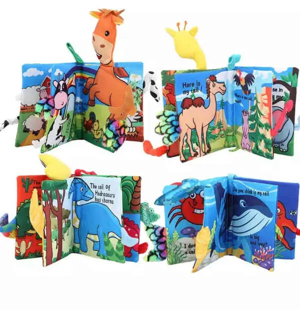 3D Animal Shape Tail Cloth Books with BB sound
