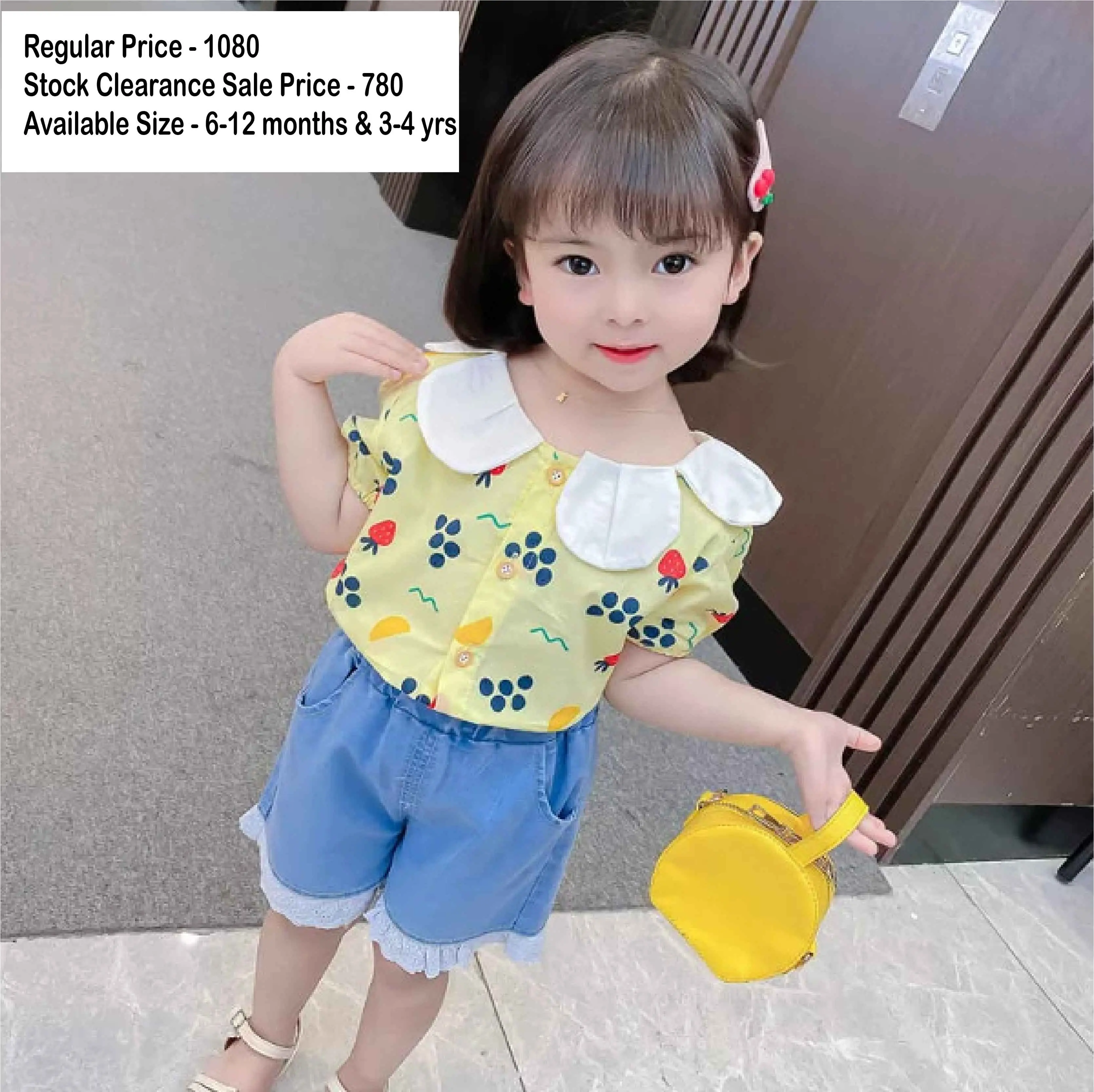 Baby\ Girl\’s\ Yellow\ Tops\ \&\;\ Denim\ lace\ Pants\ Set\