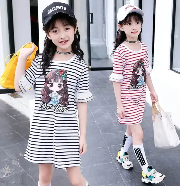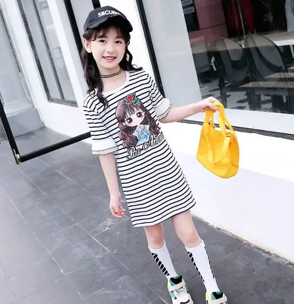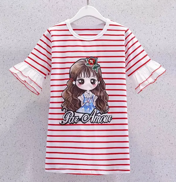Big Girl's Long Stripe T Shirt Dress Only