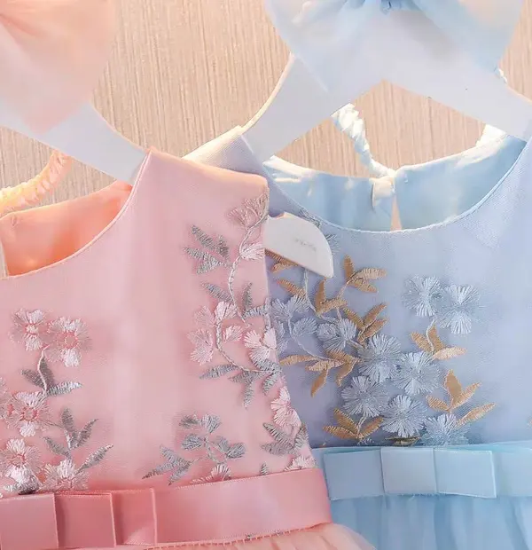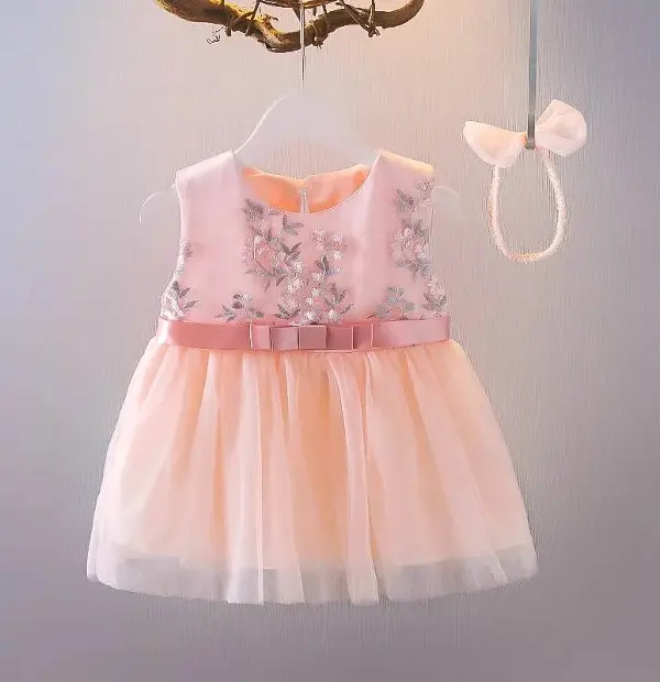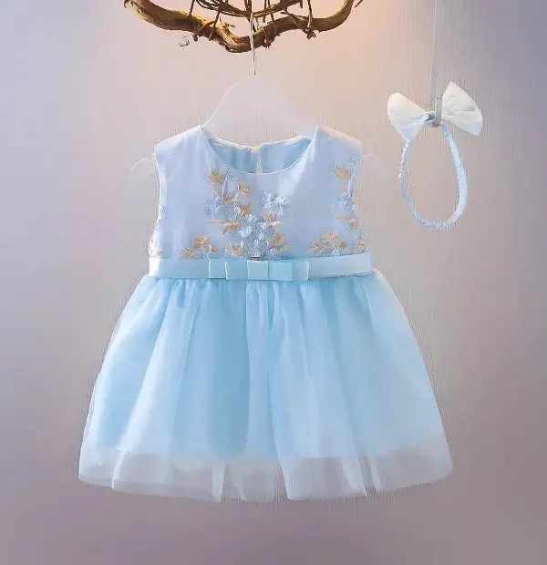 Flower Embroidery Baby Dress with Headbands